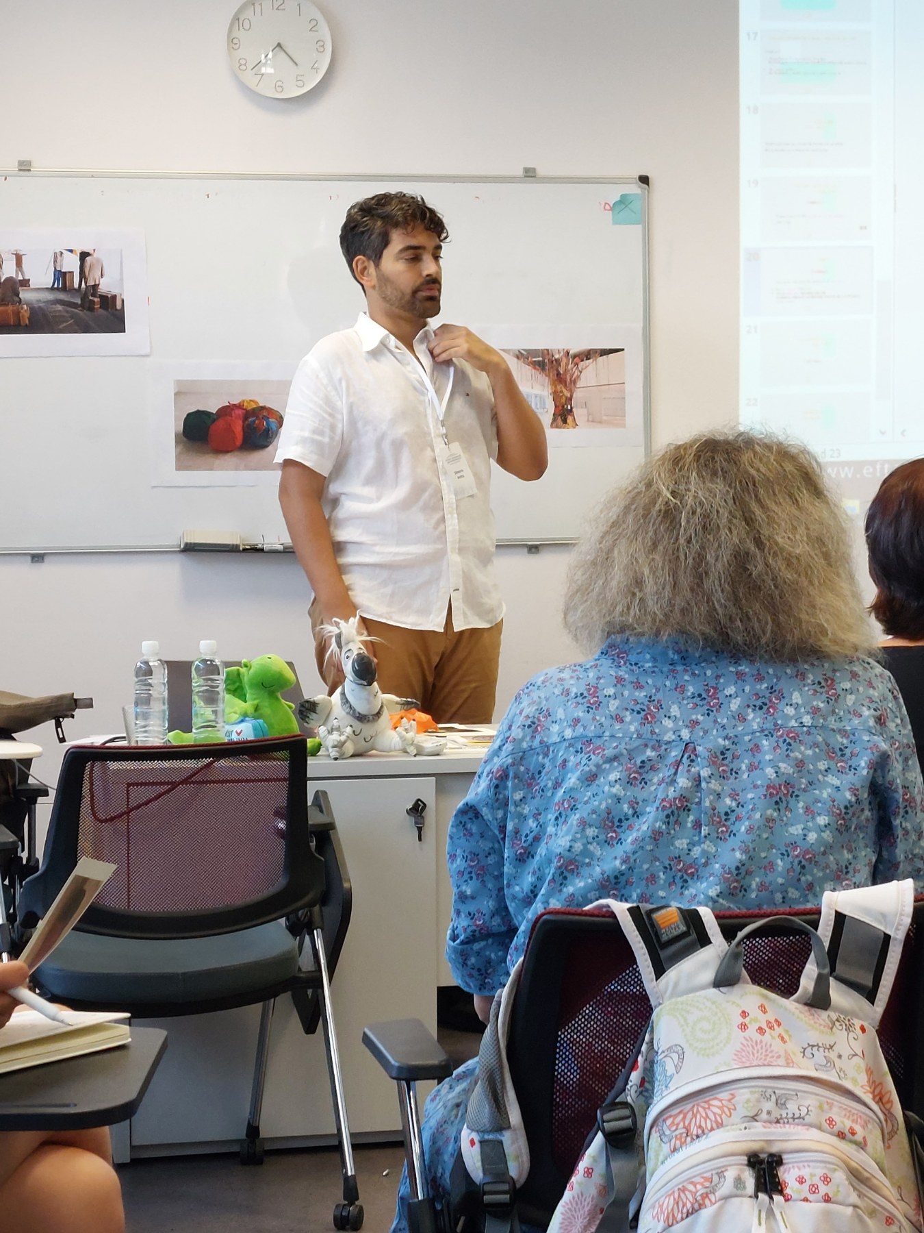 Under the supervision of our trainers Maria Pirounaki and Elena Stolaki, we experienced at the Museum of Modern Art, the use of a self-selected work of art first in self-reflection as trainees, deepening both our role- and self-awareness, second in a shared common abstracted sequence of all self-reflections, enhancing our bonding. In this workshop we focus on the process of enabling the emergence of each one’s non-conscious emotional state in a simultaneous dialogue with his/her conscious convictions regarding the self and the role ‘trainee’. We emphasize the importance of the recognition and the acceptance for the therapist-to-be, of personal emotions and experiences in distinction to those of the client through means of a work of art. Participants will have the chance of becoming familiar with the use of experiential exercises based on portable art forms and also to tell the difference among the use of art in training, psychoeducation and therapy.