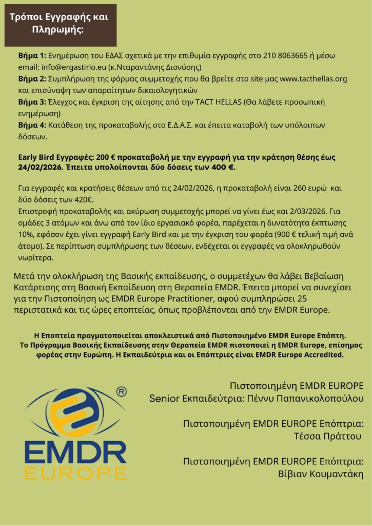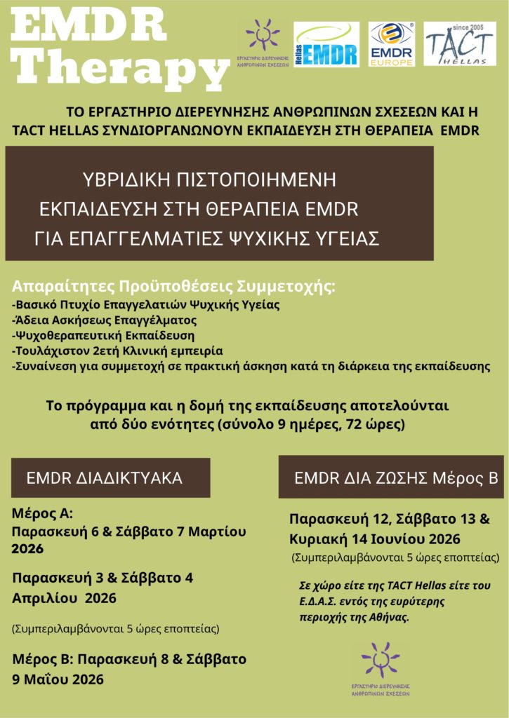Υβριδική πιστοποιημένη εκπαίδευσης στη Θεραπεία EMDR για Επαγγελματίες Ψυχικής Υγείας